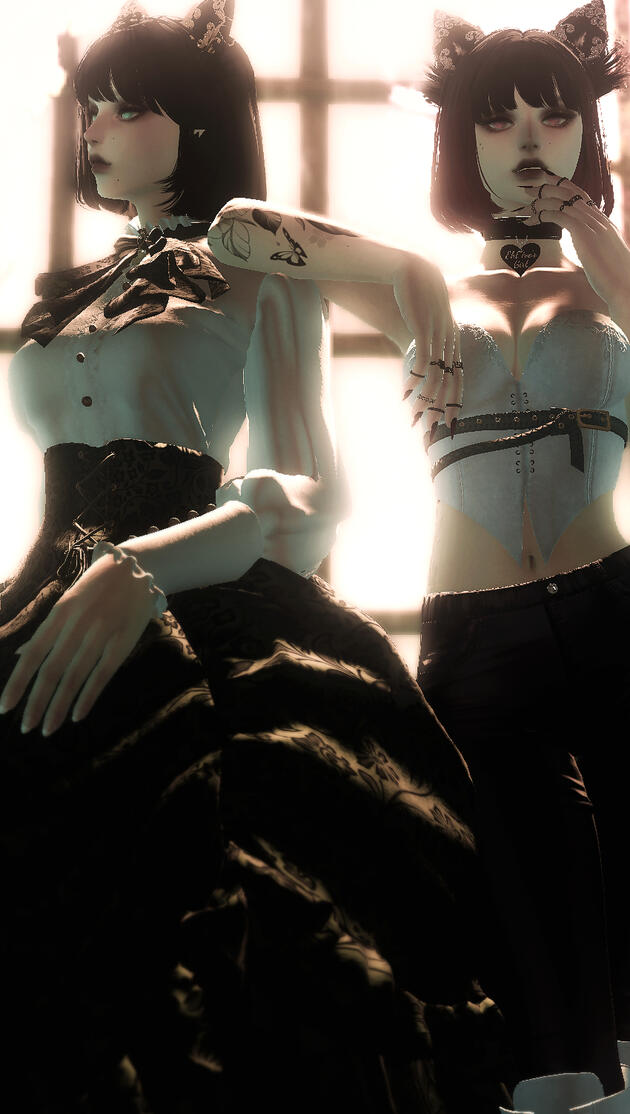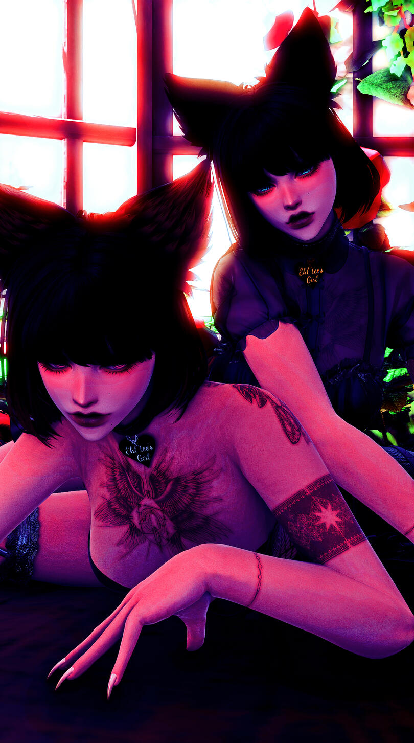 Depending on who is running the show for that moment, they react according to the soul. While Ana is active her hair is a sleek black and her eyes a piercing green with several dark rings in the iris. While Sol is active, the tips of their black hair become a soft, dark pink and her eyes a similar color but sporting the same dark rings as Ana. Recently, they have found a middle ground, where they can both man the body at once, it is rare and only seems to be active during a fight for their lives. Their hair remains black but Sol's pink eyes float to the surface. She has only been in this state twice, as of the present day.